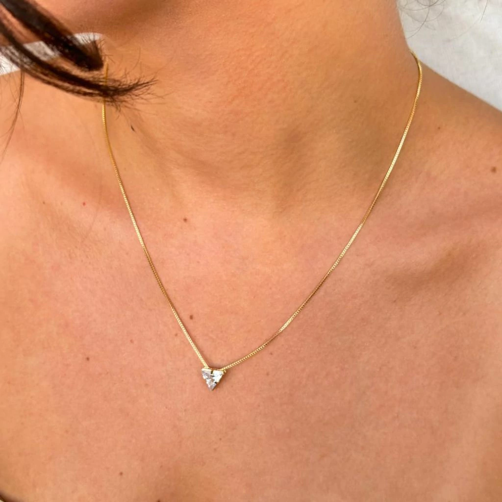 Elegante e cheio de personalidade, este colar traz um pingente em formato de triângulo. Um símbolo de equilíbrio, força e significado.